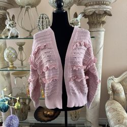 Zara Structured Knit Cardigan Jacket Pink Size Small Ruffled$35Las Vegas, NV