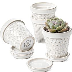 LE TAUCI Ceramic Succulent Pots, 4 Inch Small Plant Pot for Indoor Plant Cactus, Embossed Flower Pots with Drainage Hole & Saucer - Set of 4, Arctic W$20Las Vegas, NV