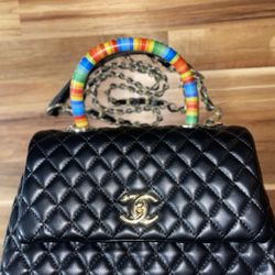 Chanel Black Quilted Handbag Rainbow Handle Gold Chain$890Las Vegas, NV