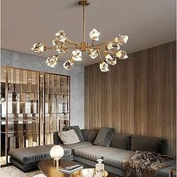 Lámpara de araña LED moderna, lámpara Sputnik de latón cepillado, moderna lámpara colgante de cristal LED de mediados de siglo, ramas doradas, $280$280Las Vegas, NV