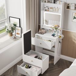 Vabches Make Up Vanity Desk With Mirror And Lights, White Vanity Table Set With Charger Station,Girls Small Vanity And Storage Chair$75Las Vegas, NV