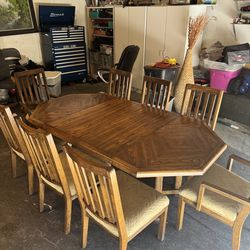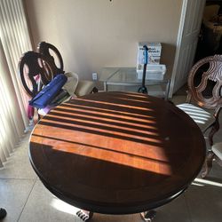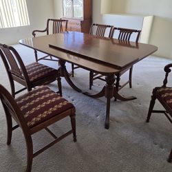 Vintage Solid Wood Dining Table With 6 Highback Chairs With a Leaf and Table Top Covers$300North Las Vegas, NV