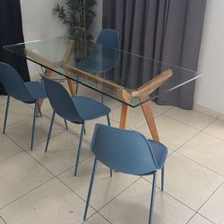 Modern glass dining table with 4 white chairs$160Las Vegas, NV