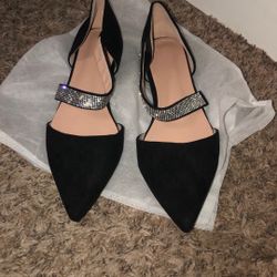 Daisy Fuentes black suede-like ballet flats with a rhinestone ankle strap$10Las Vegas, NV