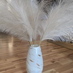 2 Large White Vases With Artificial Leaves And Flowers Smaller: 15"Hx11"W Taller Vase 18"Hx 14"W$65Las Vegas, NV