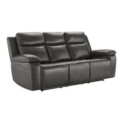 Kenol 88.2'' Wide Gray Genuine Leather Power Reclining Sofa with Adjustable Headrest- Brand New In Box$700Henderson, NV