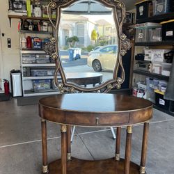 Entry wood table(Semi circle Table)+ square mirror$30Las Vegas, NV