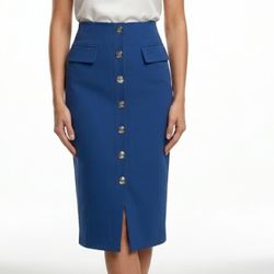 NYCC Dark Academia Navy Button Front Midi Pencil Skirt Pockets Medium $30Las Vegas, NV