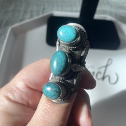 A size 8 vintage three-stone turquoise silver statement ring. $65Las Vegas, NV