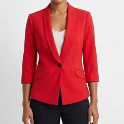 Dianzhi Red Silk Lined Blazer Shawl Collar 3/4 Sleeve Single Button Jacket Sz 9 $50Las Vegas, NV