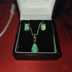 Green Opal Sterling Silver 925 Engraved Necklace And Earrings$150Las Vegas, NV