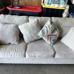 Comfortable grey brown couch very nice well taken care of good for small spaces feathered pillows$250North Las Vegas, NV