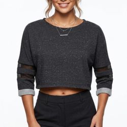 Ambiance Gorpcore Speckled Cropped Sweatshirt Mesh Sleeve Detail Grey S $25Las Vegas, NV