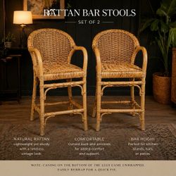Vintage Rattan Bar Stools / Counter Chairs (Set of 2) – Boho Coastal Style$220Las Vegas, NV