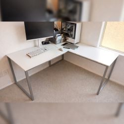 white sleek office corner L shape desk table steel silver legs$120Las Vegas, NV
