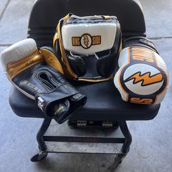 White and gold Rival RS100 boxing gloves$150Las Vegas, NV
