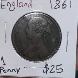 England, Queen Victoria (1 penny bronze 1861) $25Henderson, NV