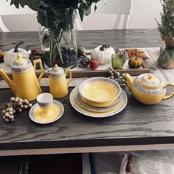 🌼 Antique 8 pc Victoria Czechoslovakia 1(contact info removed) Yellow & Blue Breakfast China #290$245Las Vegas, NV