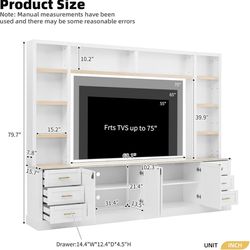 Center, Rustic TV Stand with 6 Drawers & Adjustable Shelves, Large Media Console for TVs up to 75", Modern Bookshelves Wall Unit, White$350Las Vegas, NV