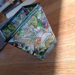 AMIA STUDIO CANDLE VOTIVE HOLDER HAND PAINTED STAINED GLASS BIRDS & ORCHIDS$20Las Vegas, NV