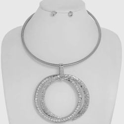 Elegant Silver Necklace With Circular Pendant and Earring Set$15Las Vegas, NV