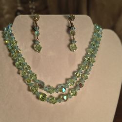 Vintage Mint Green Aurora Borealis Double Strand Necklace With Matching Clip On Earrings $45Las Vegas, Nevada