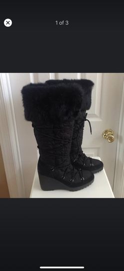Coach Sahara Fur Winter Boots Size 11 Black Zip & Tie Logo High Tops$20Las Vegas, NV