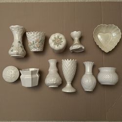 Belleek Ireland Vases, Trinket Boxes Pottery Lot Of 11 Pieces $150Las Vegas, NV