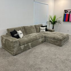 New Large Boneless Grey Corduroy Cloud Sectional Sofa Couch$750Enterprise, NV