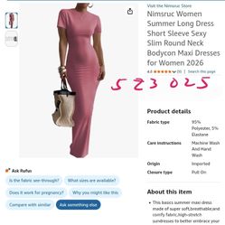 Nimsruc Women Summer Long Dress Short Sleeve Sexy Slim Round Neck Bodycon Maxi Dresses for Women 2026 Size Small$5Las Vegas, NV