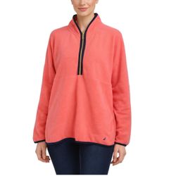 Nautica Women's XL Pink Coral Fleece 1/4 Zip Pullover Sweatshirt Navy Trim $28Las Vegas, NV