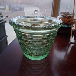 🌼Vintage Light Green Genuine Recycled Green Glass Basketweave Flower Pot🌻$10Las Vegas, NV