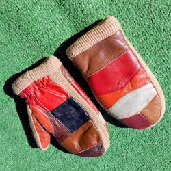 Leather Patchwork w/Knit Acrylic Vintage 1960's Petite Medium Mittens Set EUC$20Las Vegas, NV