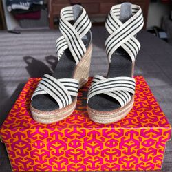 Tory Burch Frieda Elastic Stripe/Leather Espadrille Wedges (Size 6)$60Las Vegas, NV