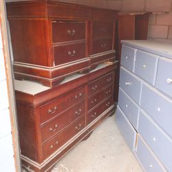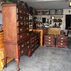Vintage Solid Cherry Wood Bedroom Set: Long Dresser With Mirror, Tall Upright Dresser, 2 Nightstands; Excellent Conditions Made By Florida Furniture $500Las Vegas, NV
