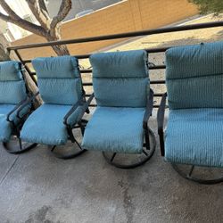 4 Outdoor All Weather Aluminum Frame Rust Proof Swivel Rocking Patio Dining Chairs With 4 Teal Color Reversible Side Cushions In Good Condition $300Las Vegas, NV