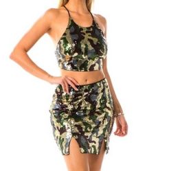 Sequin Army Fatigue Skirt Set $15Las Vegas, NV