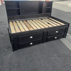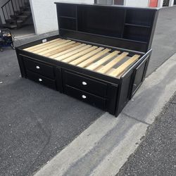 Twin sized Black Bedframe with Storage Drawers & Bookshelf$70Las Vegas, NV