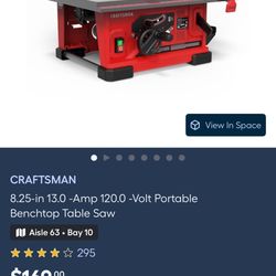 Craftsman 10” inch 15 Amp 5000 RPM Portable Collapsible Wheeled Job Site Table Saw 3” Cutting Depth$140Las Vegas, NV