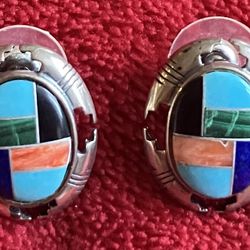 CAROLYN POLLACK RELIOS OVAL MULTI STONE TURQUOISE INLAY STERLING SILVER EARRINGS $59Las Vegas, NV