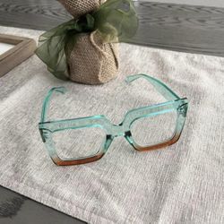 🏝️New! Turquoise & Brown Color Block Square Anti Blue Light Glasses w Cleaning Cloth$13Las Vegas, NV