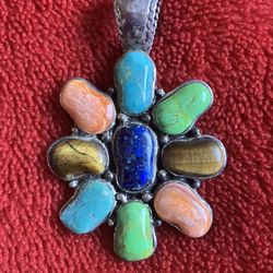 VINTAGE NAVAJO ZUNI SOUTHWEST MULTI STONE TURQUOISE LAPIS PENDANT ‼️ Needs proper Cleaning / polish For BEst Appearance ‼️$49Las Vegas, NV