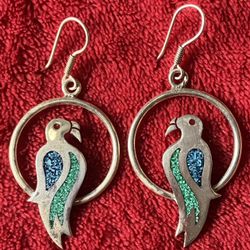 Vintage Sterling Silver Inlay Turquoise Parrot Bird Earrings ‼️ NEEDS PROPER CLEANING / POLISH - For BEST Appearance ‼️$25Las Vegas, NV