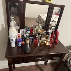 vanity with 3 mirrors, dark brown color.$60Reno, NV