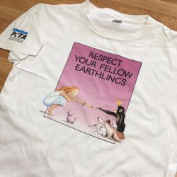 Vintage PETA Respect Your Fellow Earthlings Animals T Shirt 90s L Single Stitch$120Reno, NV