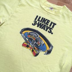 Vintage 70s I like it 3 Ways Pioneer Car Speakers Hanes L T Shirt USA Yellow 80s$130Reno, NV