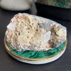 Pink Skeletal Quartz, Titanium Iridescent Pyrite, And Specs Of Rhodochrosite $150 (Crystals)$150Dayton, NV