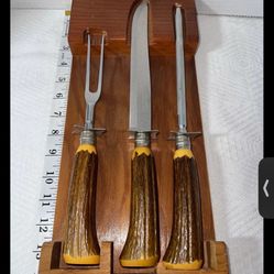 Vintage Hollow Ground Stainless Steel Carving Set with Faux Stag Horn Handles$29Mccarran, NV