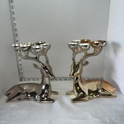 Vintage Brass Christmas Reindeer Candle Sticks Holder Set of 2 heavy laying down$70Mccarran, NV