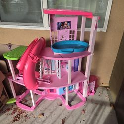 Pink Plastic Dollhouse With Tiny Furniture/Accessories $10Mound House, NV